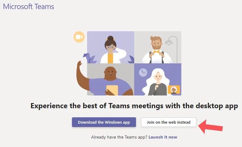 2. Join a private video conference by using Microsoft Teams. After you have clicked the link, you will be redirected to a launching page from Microsoft.
